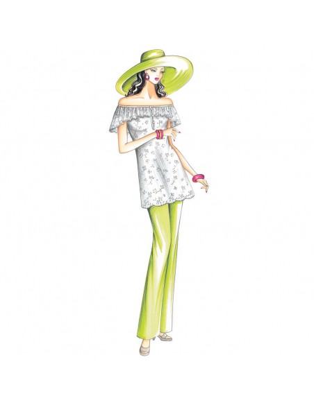 Blusa para hacer en encaje de sankt gallen, escote amplio con volante.