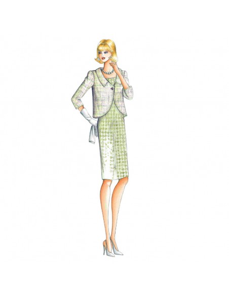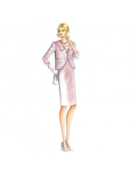 Chaqueta con cuello que se puede confeccionar con o sin dibujo de pliegues y dobladillo redondeado.