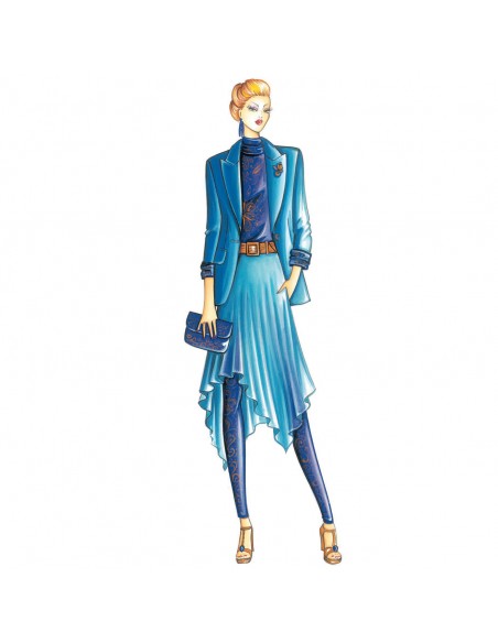 Chaqueta de una sola fila de botones, suelta y solapa tipo lanza, aconsejable en raso o crespón, manga larga de puño forrado en punto laminado elástico, al igual que los leggins.