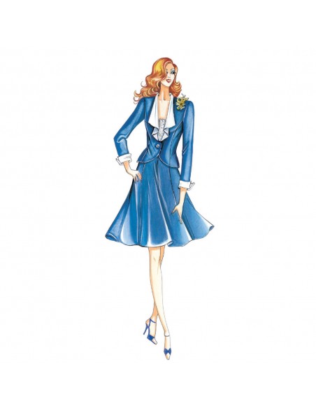 Chaqueta en crespón de línea modelada, cierre con un solo botón joya, cuello cruzado formando volante.