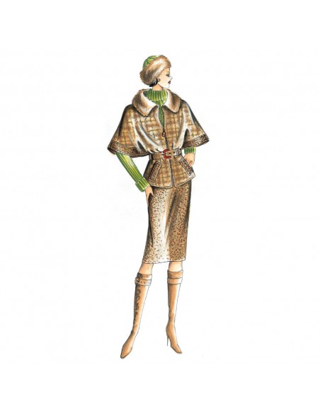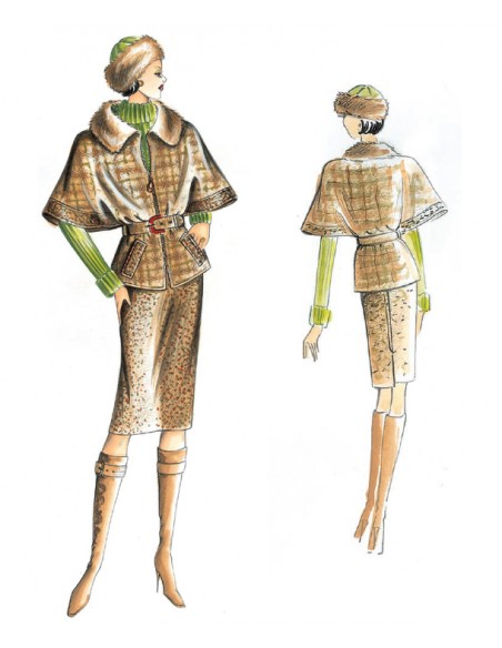 Pequeña casaca estilo años 70, mangas anchas efecto esclavina, cuello en visón y cierre de cremallera.