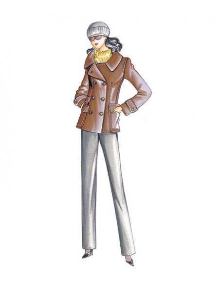 Chaquetón de doble fila de botones, modelado, cuello camisa ligeramente suelto, bolsillos aplicados.