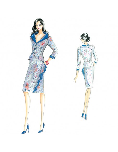 Falda recta con volante aplicado en diagonal sobre un lado. Chaqueta n. 2402.