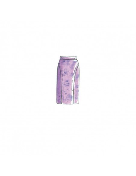 Falda recta, por detrás lleva motivo de cortes arqueados que se abren en pliegues en la parte inferior. Se puede hacer en crespón, sarga, lana fría, denim, tejido fantasía. Top 3336.