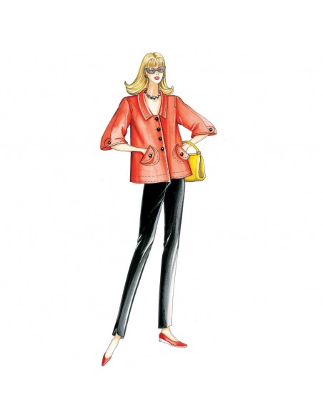 Chaqueta primaveral para hacer en shantung o lino, de línea corta y tipo trapecio, con bolsillos aplicados, mangas acampanadas y dorsal con dobladillo. Pantaones n. 0913.