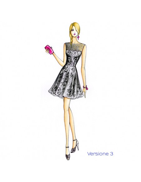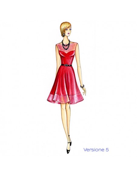 Vestido sabor vintage de corpiño ajustado realizable en distintas versiones: de corpiño entero con escote barco, con canesú en chifón y escote recto o en corazón.