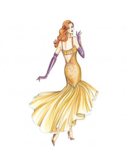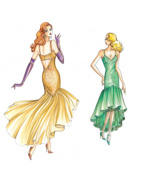 Vestido de noche, se puede hacer de encaje macramé y tafetán con cancán con capas en tul. Se puede hacer tambien en organdí o raso.