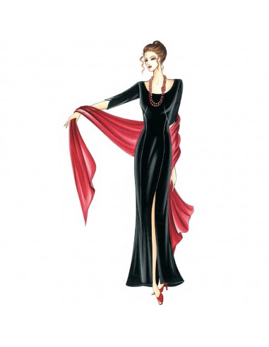 Vestido elegante, se puede hacer con o sin el panel aplicado sobre la pequeña franja de pliegues, falda por la pantorrilla, al bies. Recomendable en muselina o crespón-georgette.