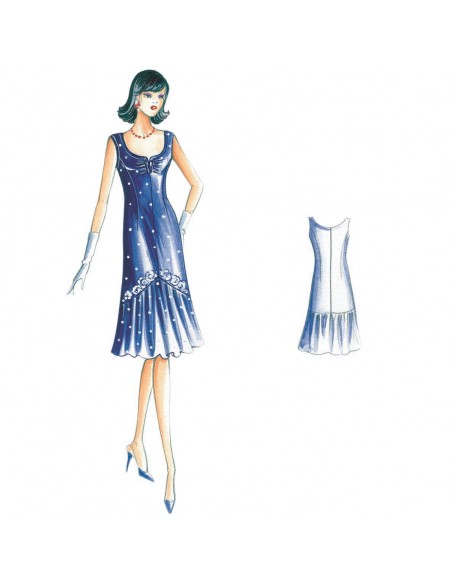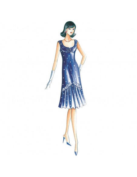 Vestido, para hacer en gasa de algodón o raso fantasía, aplicaciones de encaje para adornar el volante. Chaqueta n. 2127.