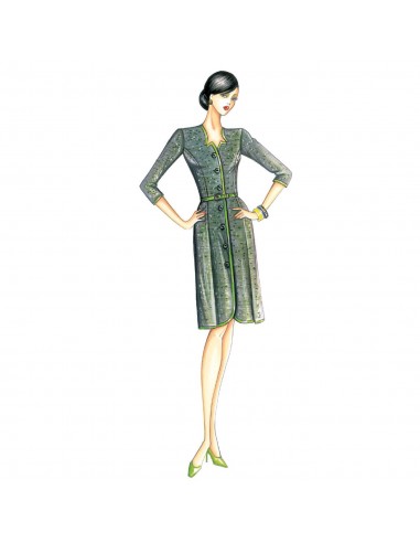 Vestido ligeramente acampanado, motivo de pequeños pliegues situados hacia el lateral.