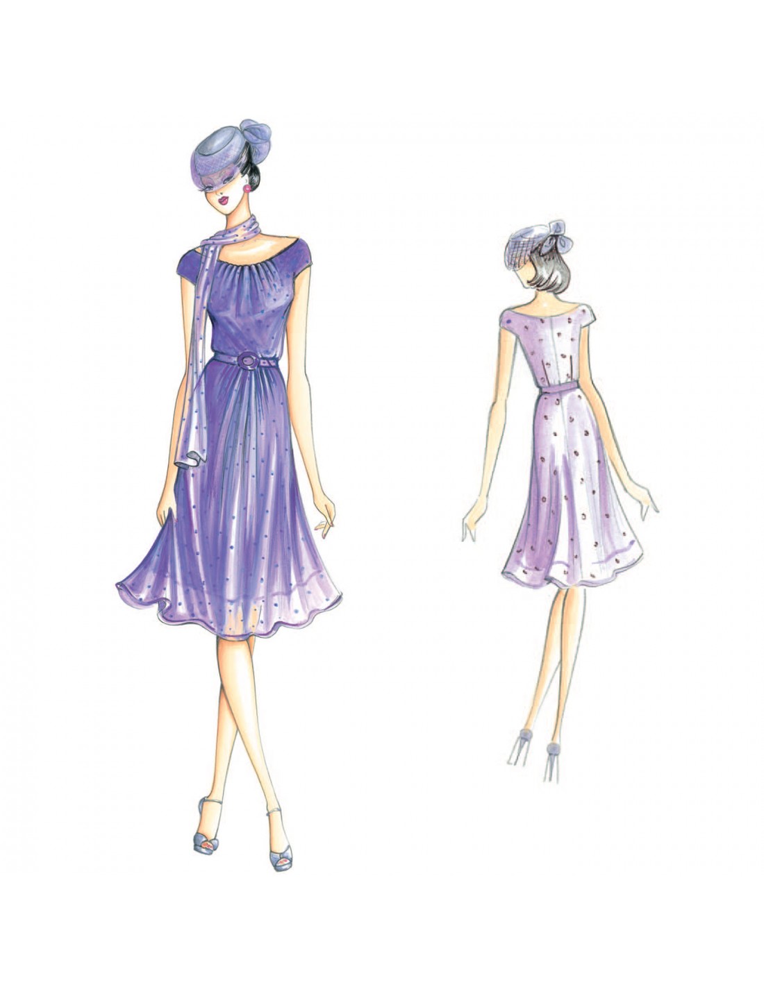 Vestido para hacer de gasa o punto de seda, escote barca y pequeños pliegues para dar soltura, falda al bies y cinturón para marcar el talle.