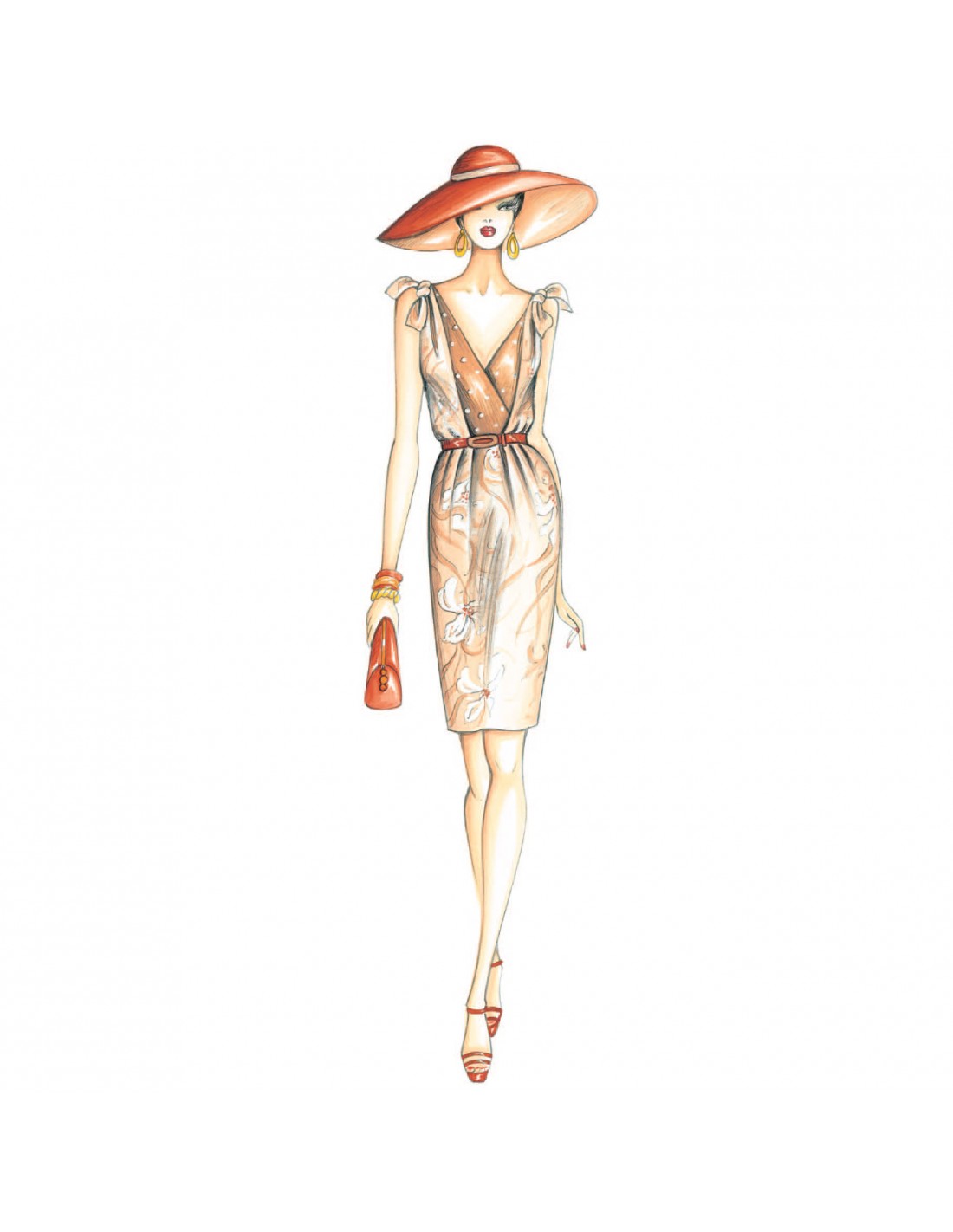 Vestido sencillo y elegante, para hacer en doble fantasía o en tela de dos colores, efecto de doble corpiño con nudos en la espalda.