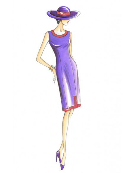 Vestido ceñido, para realizar en franela de lana, bolsillos interiores y abertura lateral presa con dos botones.