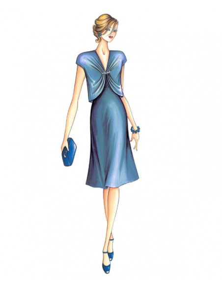 Vestido minimal-chic, escotado, de corte imperial y falda al bias. Se puede hacer en crespón, satén, punto, tafetán, encaje. Chal 3326.