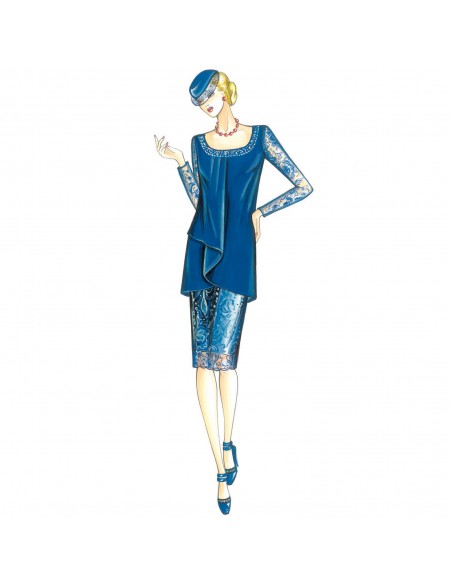 Casaque élégante avec pans croisés à réaliser en tissu léger bicolore ou crêpe et manches en dentelle.