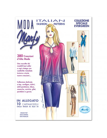 En occasion de cet important anniversaire nous avons publié la première collection « Marfy Evergreen », une collection extrêmement riche comprenant 380 modèles qui ne se démoderont jamais.