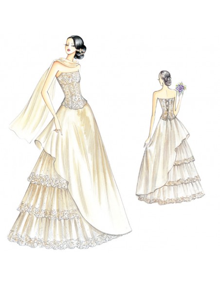 Tissu nécessaire: environ mt. 5,60 largeur 1,40. Tulle environ mt. 8,60 largeur 1,40. Bord en dentelle environ mt. 20,40.
