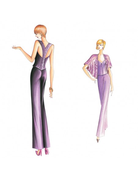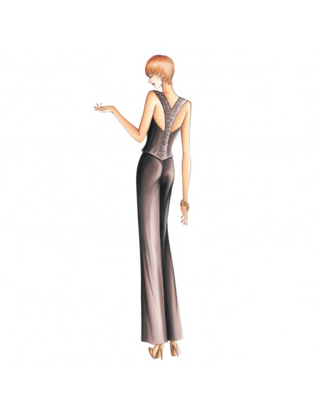 Bustier à réaliser en velours ou en satin, bretelles façonnées au dos en paillettes et décolleté en cœur sur le devant. Cardigan n° 5004.