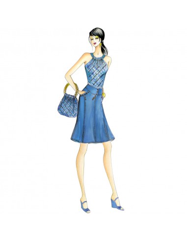 Jupe divisée en lés, ample au bas à réaliser avec ou sans ourlet festonné. Veste n. 3049.