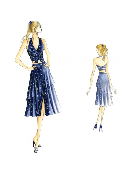 Jupe avec ouverture au milieu et doubles volants de ligne à godet. Top n. 9893.