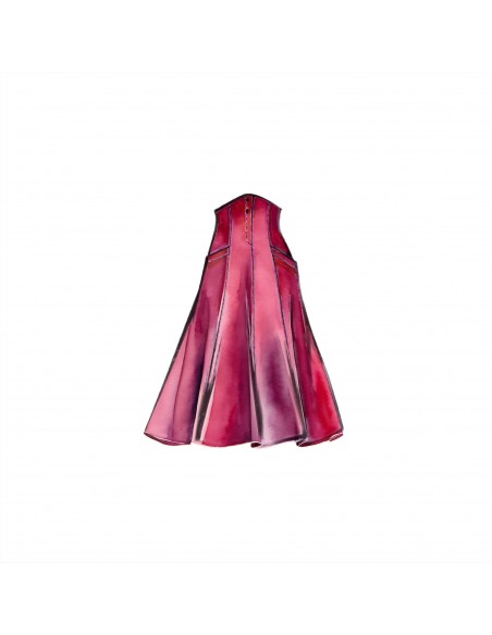 Jupe à lès très larges en biais, taille relevée et poches intérieures. Tissus recommandés : faux leather, lin, viscose.