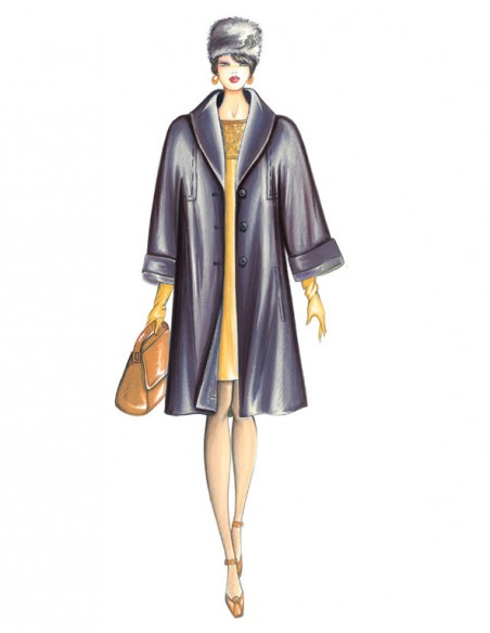 Manteau de ligne droite et pratique, col châle, emmanchures rectangulaires et poches lisérées.