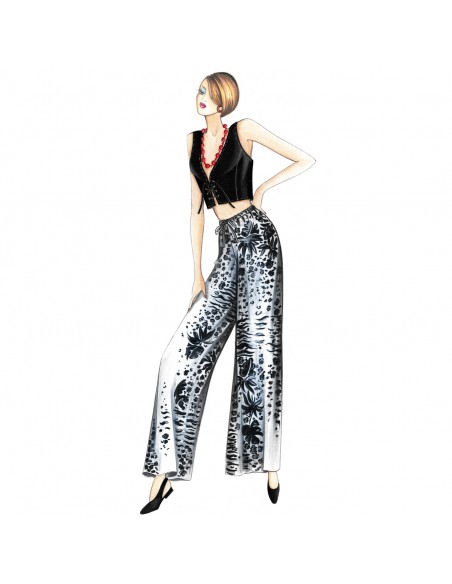 Pantalon large et droit, sans coutures latérales, avec une bande élastique intérieure ou cordon de serrage. Gilet n. 8061.