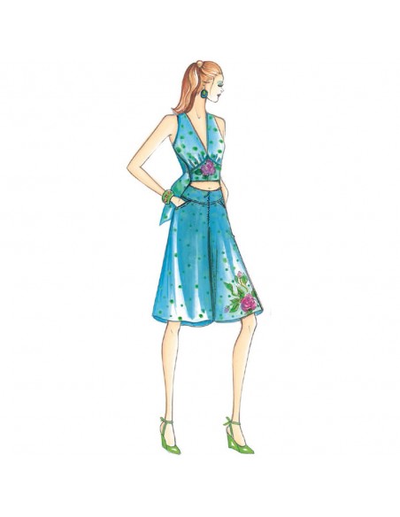 Jupe-pantalon de ligne évasée, petite basque et zip sur le milieu devant. A compléter par le top 3884.