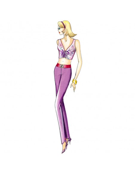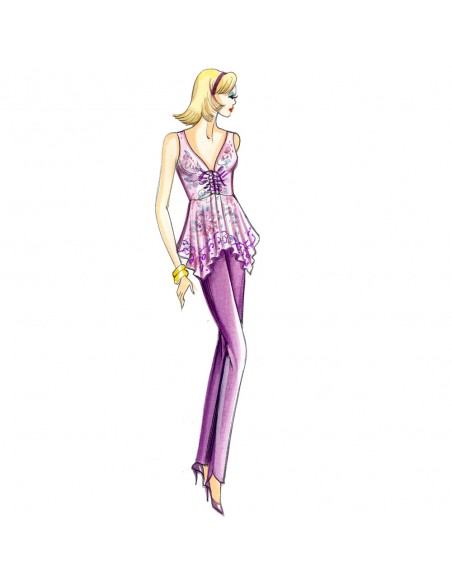 Top de ligne mi-moulée avec motif de plis repassés sur l’encolure. Jupe n. 2994.
