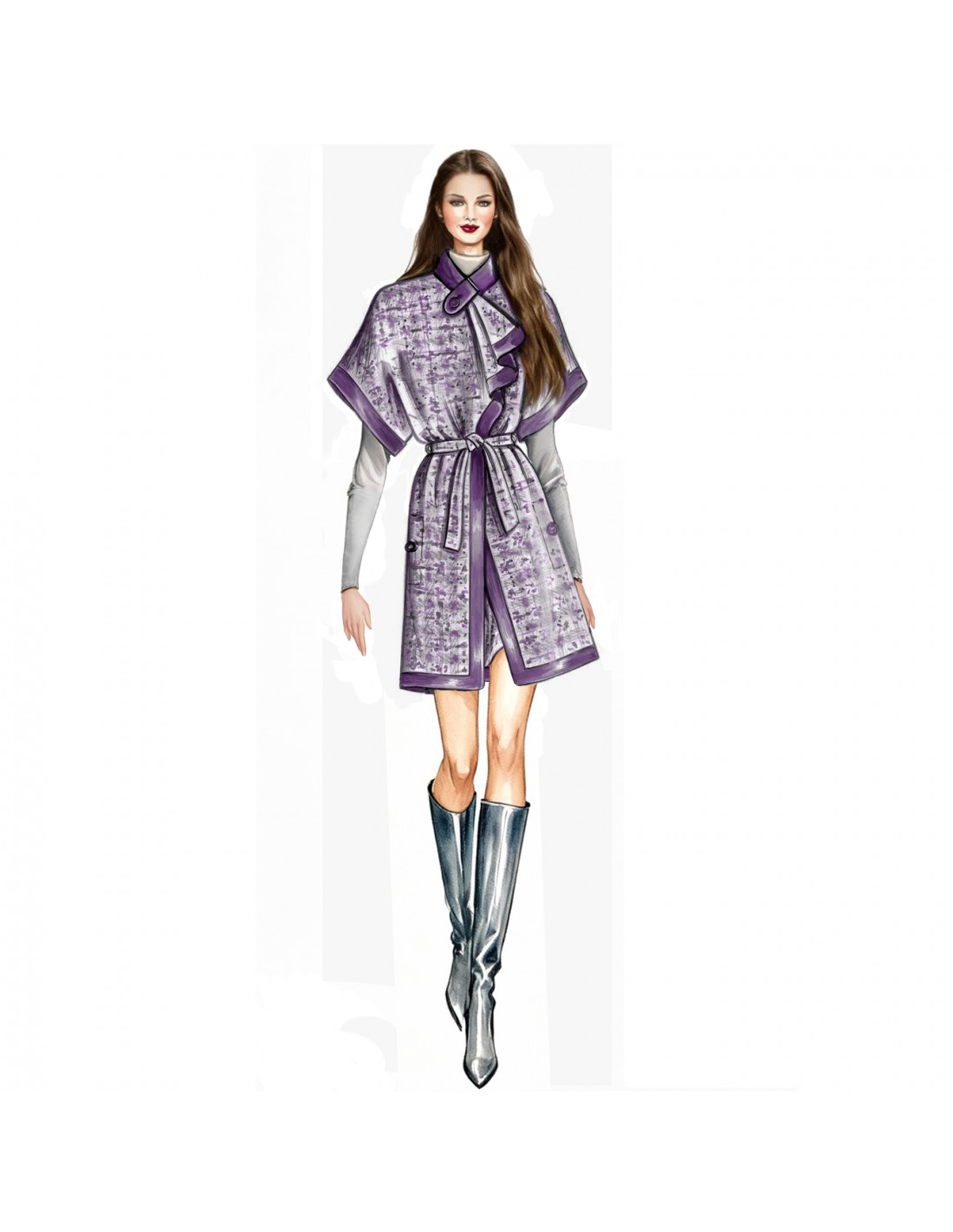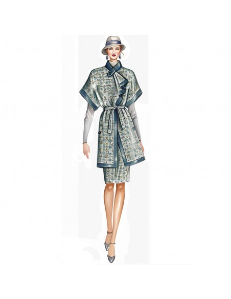 Cardigan de ligne droite et manches kimono, à réaliser en laine écossaise ou jersey et bords unis.