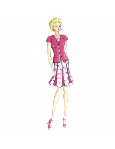 Gilet de ligne mi moulée à réaliser en gabardine ou double jersey. Jupe n. 3248.
