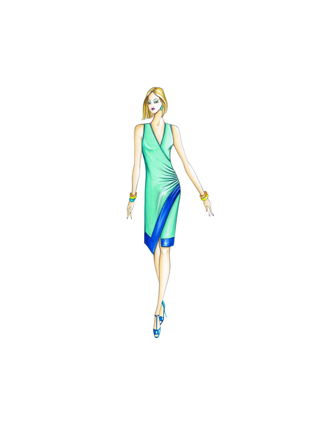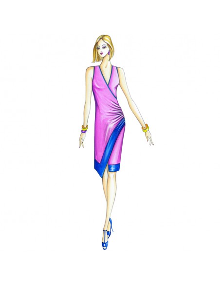 Ligne mi-moulée pour la robe à double croisement et drapé sur le côté, ourlet asymétrique, à réaliser en jersey fantaisie ou uni