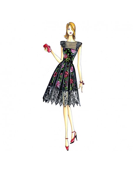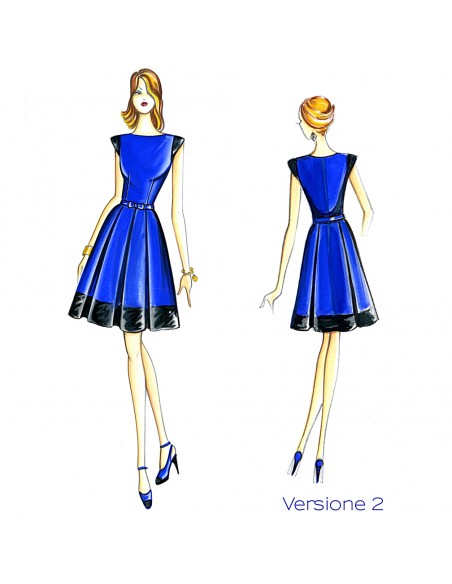 Indiquée autant de jour que de soirée la robe au corsage moulant sans manches et ample jupe avec pli creux, réalisable en multiples versions :