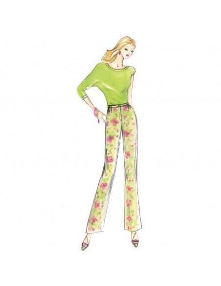 Pantalon de ligne légèrement évasée avec partielle coulisse à lam taille.