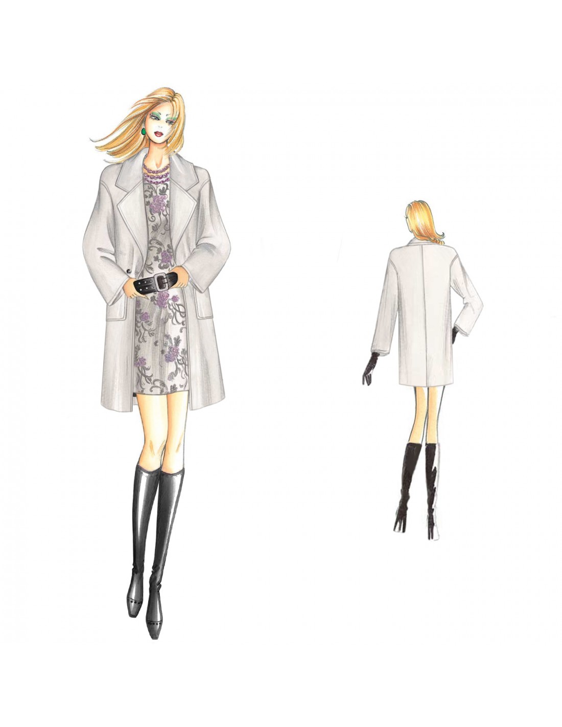 Manteau court et droit à double croisement avec manches basses, larges revers classiques et poches plaquées avec rabats. Il peut être réalisé dans des tissus classiques pour hommes ou dans des tissus en laine ou en cachemire.