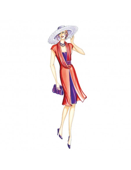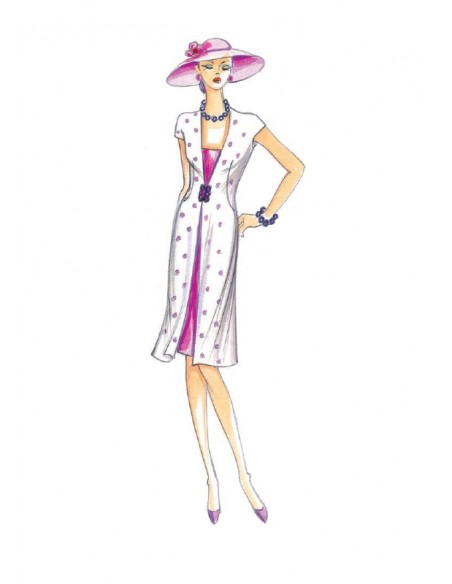 Robe-manteau complétée par un dessous conseillée en cady, jersey ou voile, ceinture brodée. Réalisable avec ou sans col drapé.