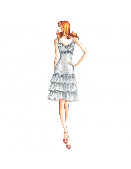 Robe combinaison à réaliser en dentelle de coton ou batiste légère, coupe empire et jupe garnie de trou-trou.