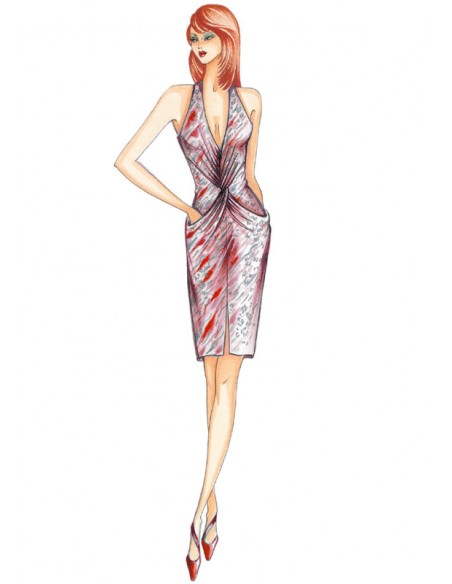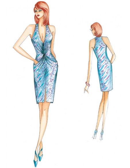 Robe juvénile avec pans croisés qui forment poches à la française sur la jupe.
