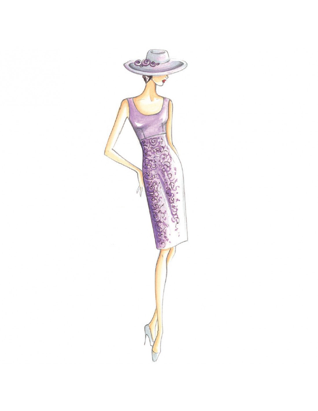 Robe droite avec coupe empire sur le corsage, conseillée en double satin.