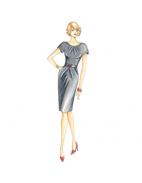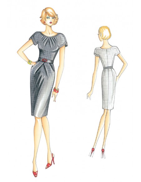Robe à réaliser en laine ou jersey, manches courtes kimono avec dessous de manche et jupe avec pinces qui forment la poche.