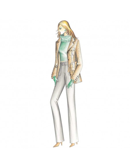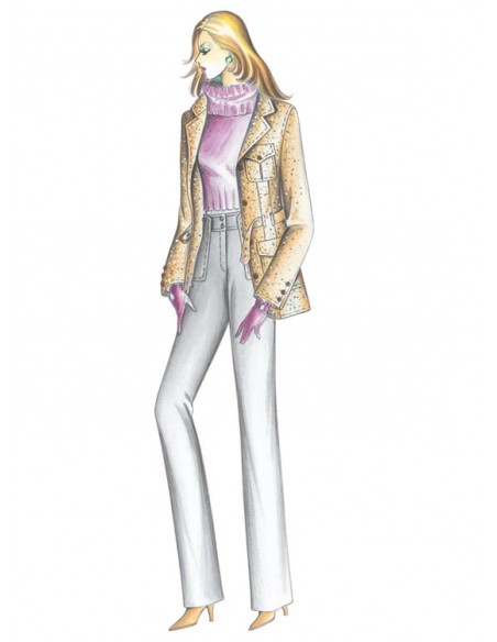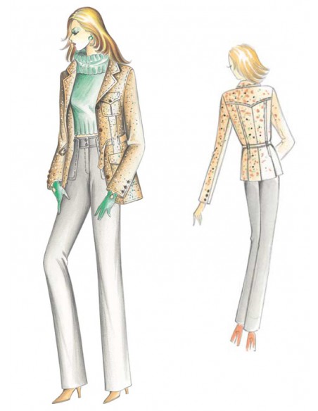 Style british-country pour la veste droite sportive réalisable en tweed avec ceinture passante et poches plaquées avec fond de pli au milieu et rabats moulés soulignés par un bouton, empiècement en V et fentes dans le dos.