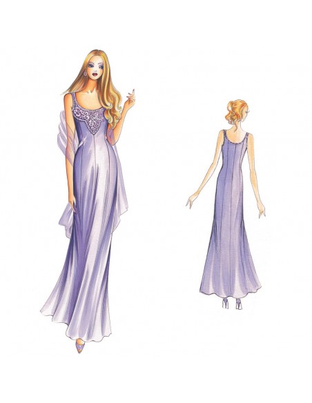 Abito lungo con tagli che snelliscono la figura, corpetto da ricamare o in pizzo rebrodé.