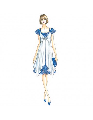 Abito sportivo a teli svasati al fondo con taglio impero percorso da piega, maniche raglan corte con listello al fondo, collo a polo e zip sia sull' allacciatura che alle tasche. Realizzabile in lino, denim, sallia.