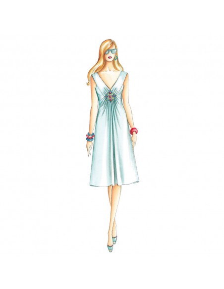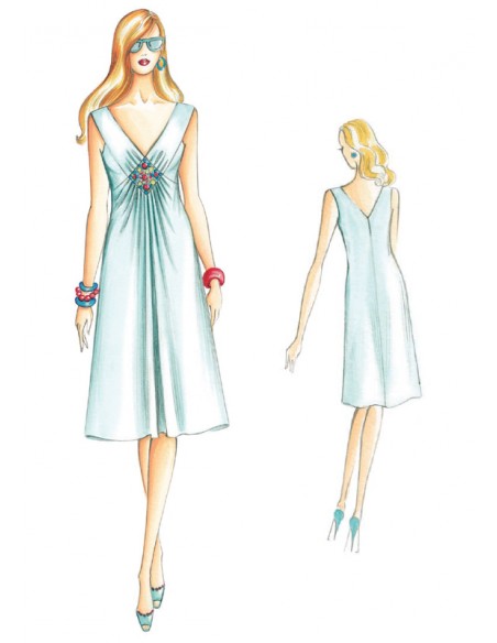 Abito di linea fluida con motivo di rombo ricamato che trattiene il drappeggio.