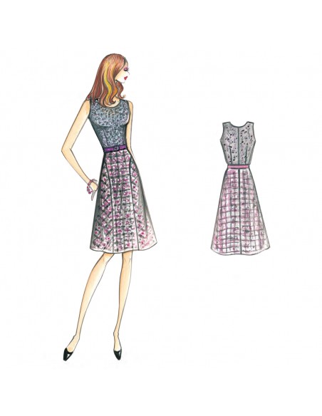 Abito senza maniche, gonna con taglio stondato intero al fianco con il dietro.