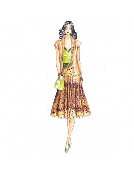 Blusa-camicia di linea diritta con collo sportivo, maniche a kimoncino, pinces sulle spalle e spacchi laterali. Realizzabile in batista, mussola, voile.