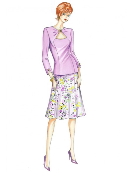 Casacchina consigliabile in crêpe o maglina di viscosa, polsi e girocollo con fermaglio in strass.