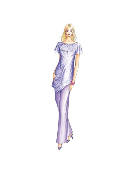 Casacca di linea morbida con carrè che trattiene una leggera arricciatura, orlo con punte verso il fianco.