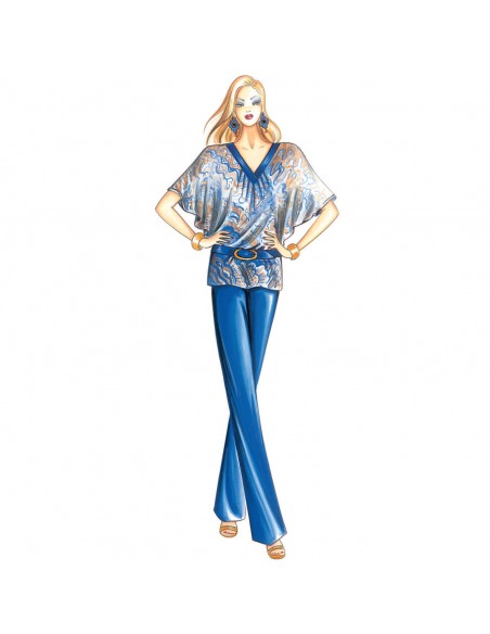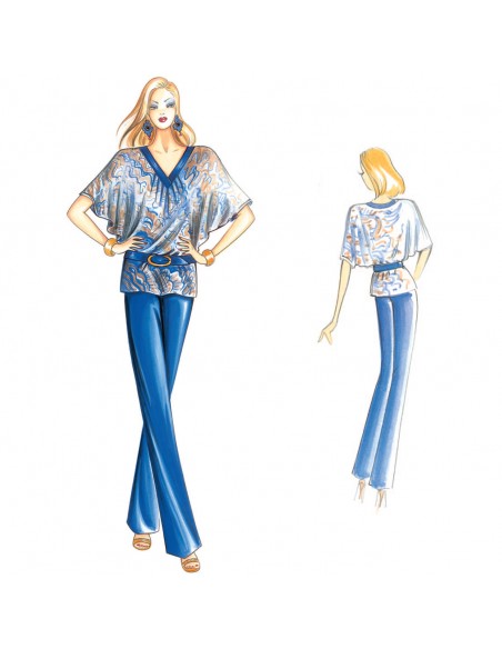Casacca consigliabile in jersey di viscosa con ampie maniche kimono ad imbuto e piccole piegoline al centro dello scollo a V.