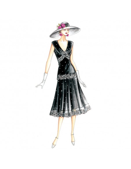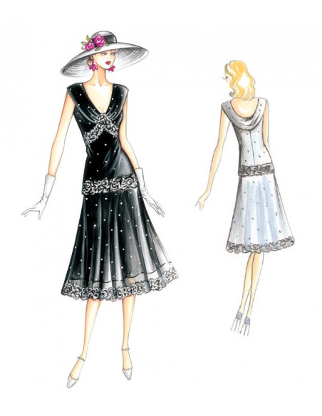 Casacchina romantica dal collo fermato da bordo in pizzo chantilly che forma effetto cappuccio nel dorso. Consigliabile in mussola o crêpe-satin. Gonna